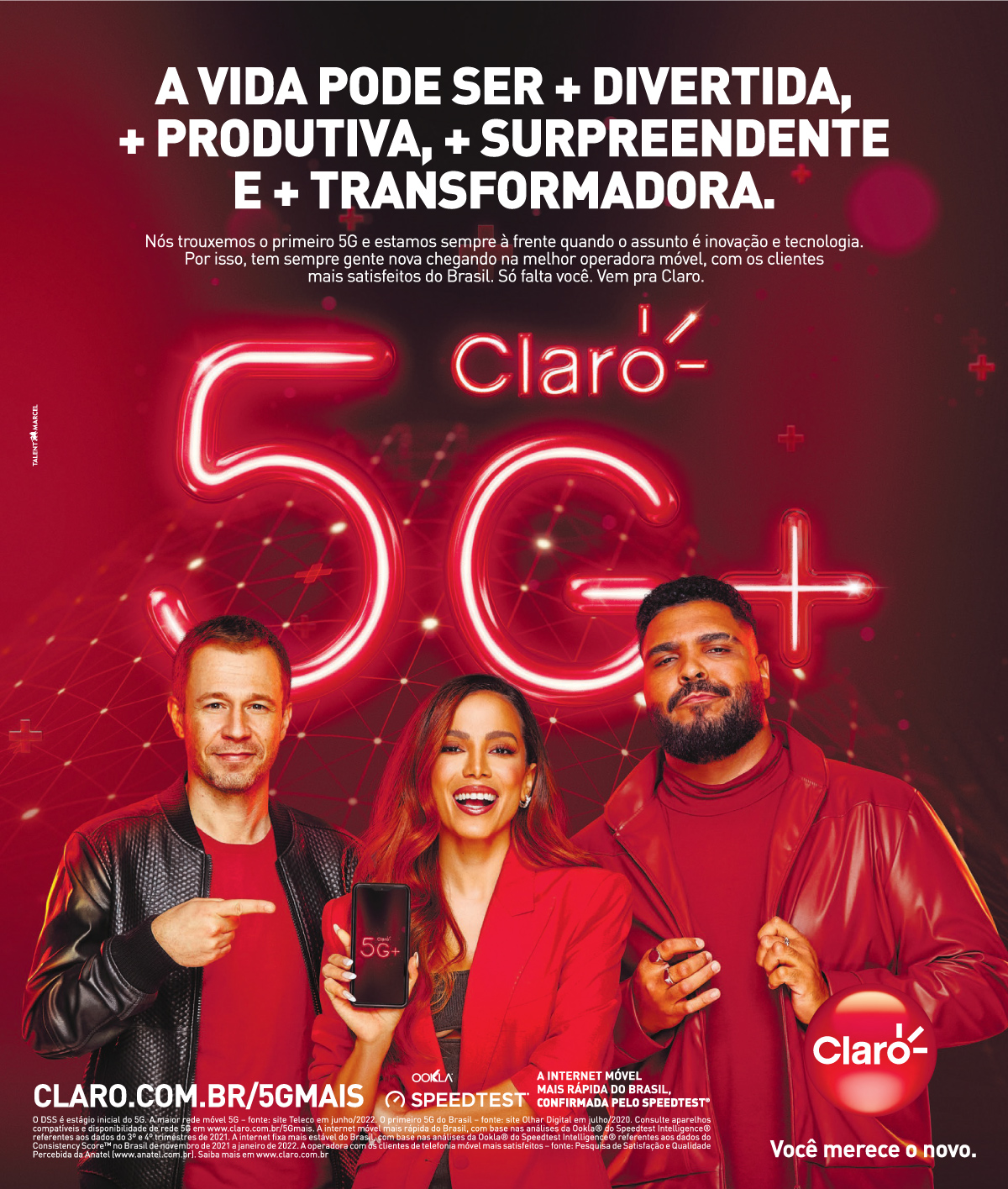 “Para a Claro, é bastante representativo que este novo e importante passo aconteça novamente em Brasília, a nossa capital federal e região onde detemos a liderança absoluta de mercado. Trata-se de um ciclo evolutivo e início de uma nova era de inovação e transformação. Há cinco anos, lançamos aqui o 4.5G, com funcionalidades inéditas para a época, que nos permitiram, a partir daquele momento, assumir a posição de líderes em velocidade da internet móvel no Brasil; e também a de operadora que mais cresceu desde então no segmento móvel”, avalia José Félix, presidente da Claro.