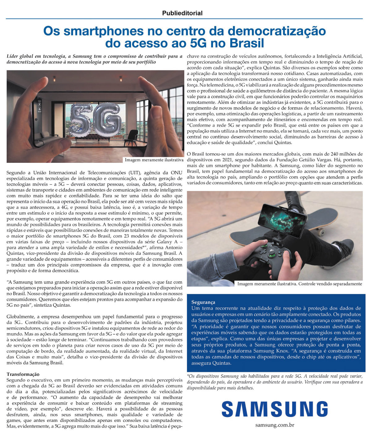 Empresas como Claro e Samsung dispõe de diversas opções para quem optar por usufruir das inovações do 5G. No último dia 30 de junho, a operadora promoveu um evento em Brasília para inaugurar a sua estratégia com o 5G na pós-liberação da faixa de 3,5 GHz.