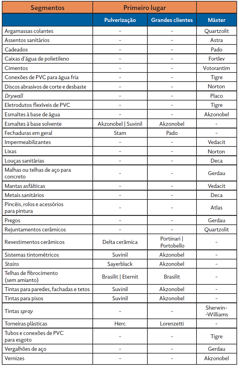 Com base na pesquisa – realizada em âmbito nacional, com 1.651 entrevistas, margem de erro de 2,4 pontos percentuais (considerando um índice de confiança de 95%), target de lojas varejistas de materiais de construção e critérios como qualidade, preço, atendimento ao ponto de venda, orientação técnica, logística e avaliação geral – foram definidos menções honrosas e os premiados da edição do Prêmio Anamaco 2021.